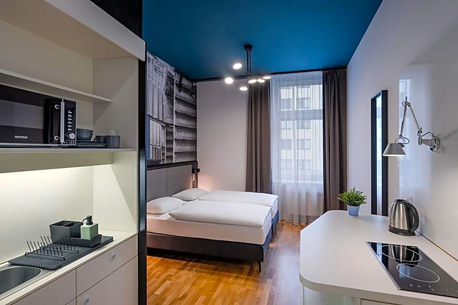 The twin/double room offers air conditioning, a private entrance, as well as a private bathroom boasting a walk-in shower and a hairdryer. The fully equipped kitchen has a stovetop, a refrigerator, kitchenware and a microwave. Among the room amenities are soundproof walls, a dining area and a wardrobe as well as city views. The unit has 2 beds.